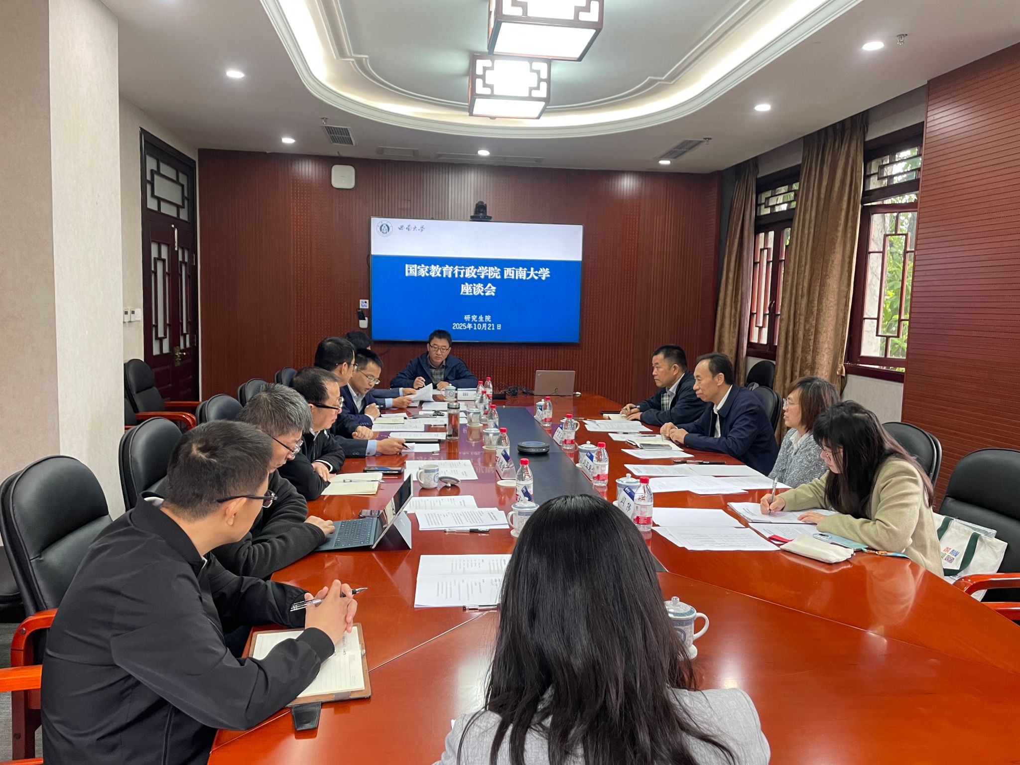 邱江副校长代表学校对于京天副院长一行的到来表示热烈欢迎。他指出,国家教育行政学院作为教育干部培训和政策研究的重要基地,学术资源丰富、平台优势突出;西南大学作为国家“双一流”建设高校,拥有扎实的教育学科积淀与人才培养基础。他强调,双方要以此次交流为契机,进一步整合资源、深化协作,共同推动高层次人才培养与学科建设迈上新台阶,助力研究生教育高质量发展。会上,双方围绕研究生联合培养模式与管理机制、导师遴选与责任落实、论文指导与质量保障、科研协同与成果产出等方面展开深入交流研讨,并就多项合作事宜达成共识。于京天副院长在总结讲话中对学校及教育学部在双方联合培养研究生工作方面的大力支持表示感谢,他高度认同与会人员研讨提出的意见建议,表示国家教育行政学院将根据会议共识,逐项推进落实各项工作,切实推动合作走实走深,实现互利共赢。